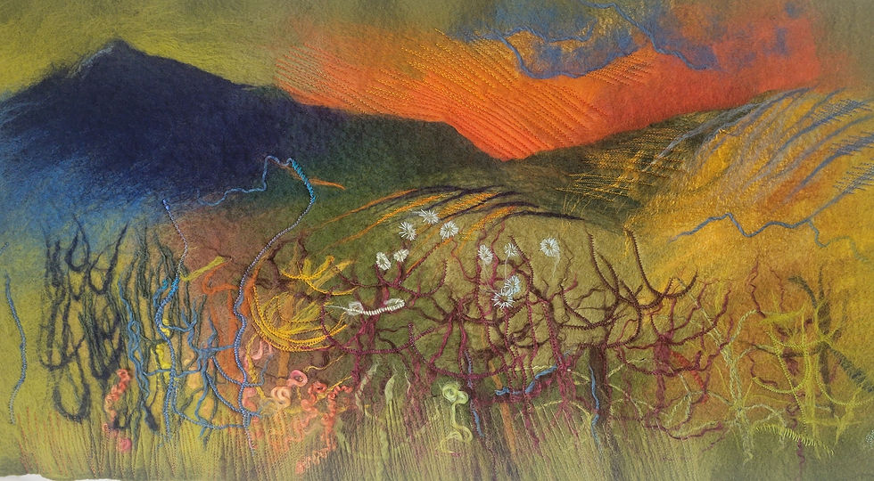 I became entranced by the medium of felt making, which seemed to enable a different way of mark making - painting with wool .